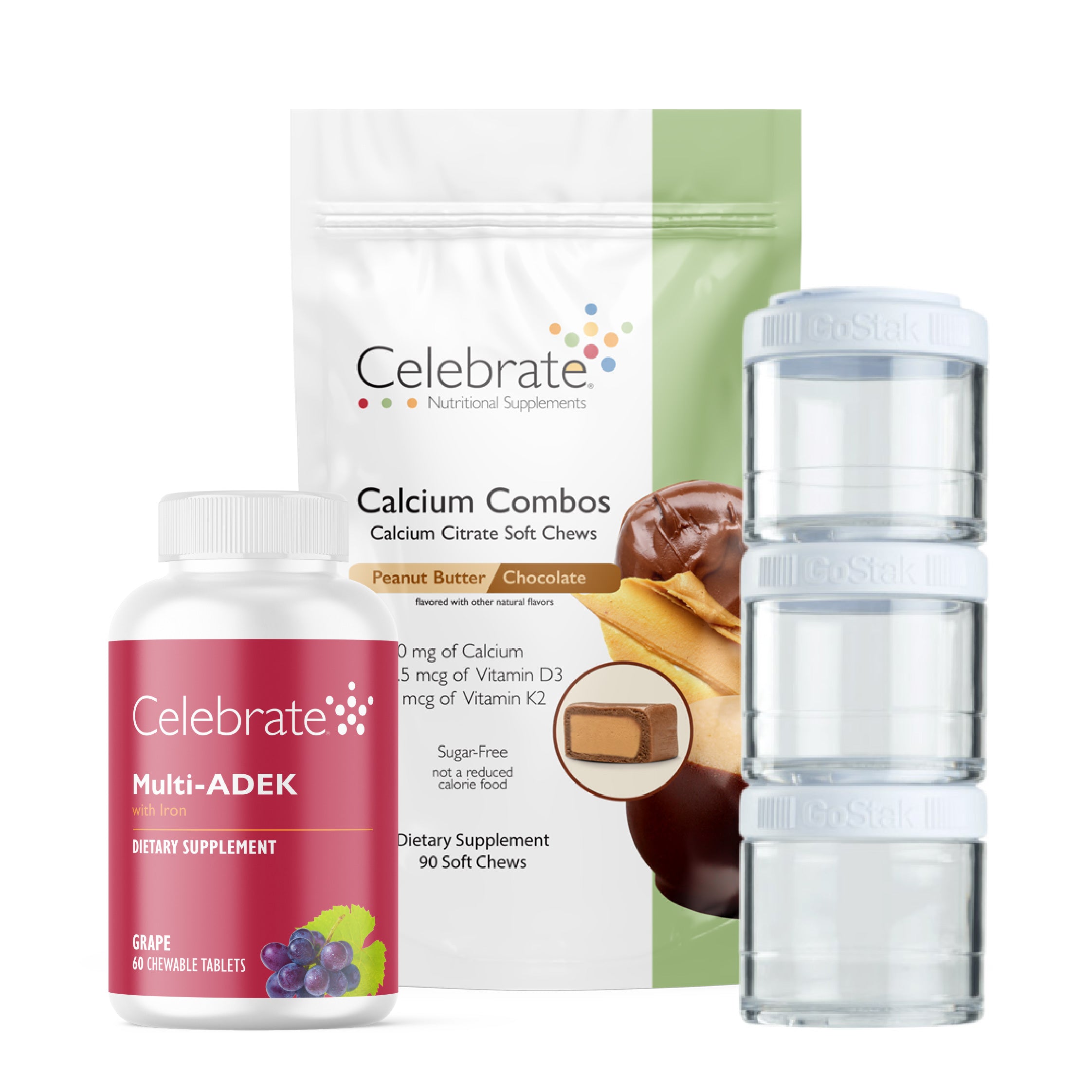 - Το νέο GOSTAK™ είναι ο τέλειος οργανωτής για την αποθήκευση διατροφικών συμπληρωμάτων για βαριατρικούς ασθενείς. Μπορείτε να αποθηκεύσετε τα συμπληρώματα Celebrate Vitamins σας για έως και πέντε ημέρες σε αυτό το φορητό, συμπαγές και βολικό GOSTAK. Χρησιμοποιήστε το για την καθημερινή σας μετακίνηση στη δουλειά, τις προπονήσεις σας στο γυμναστήριο ή όταν ταξιδεύετε.